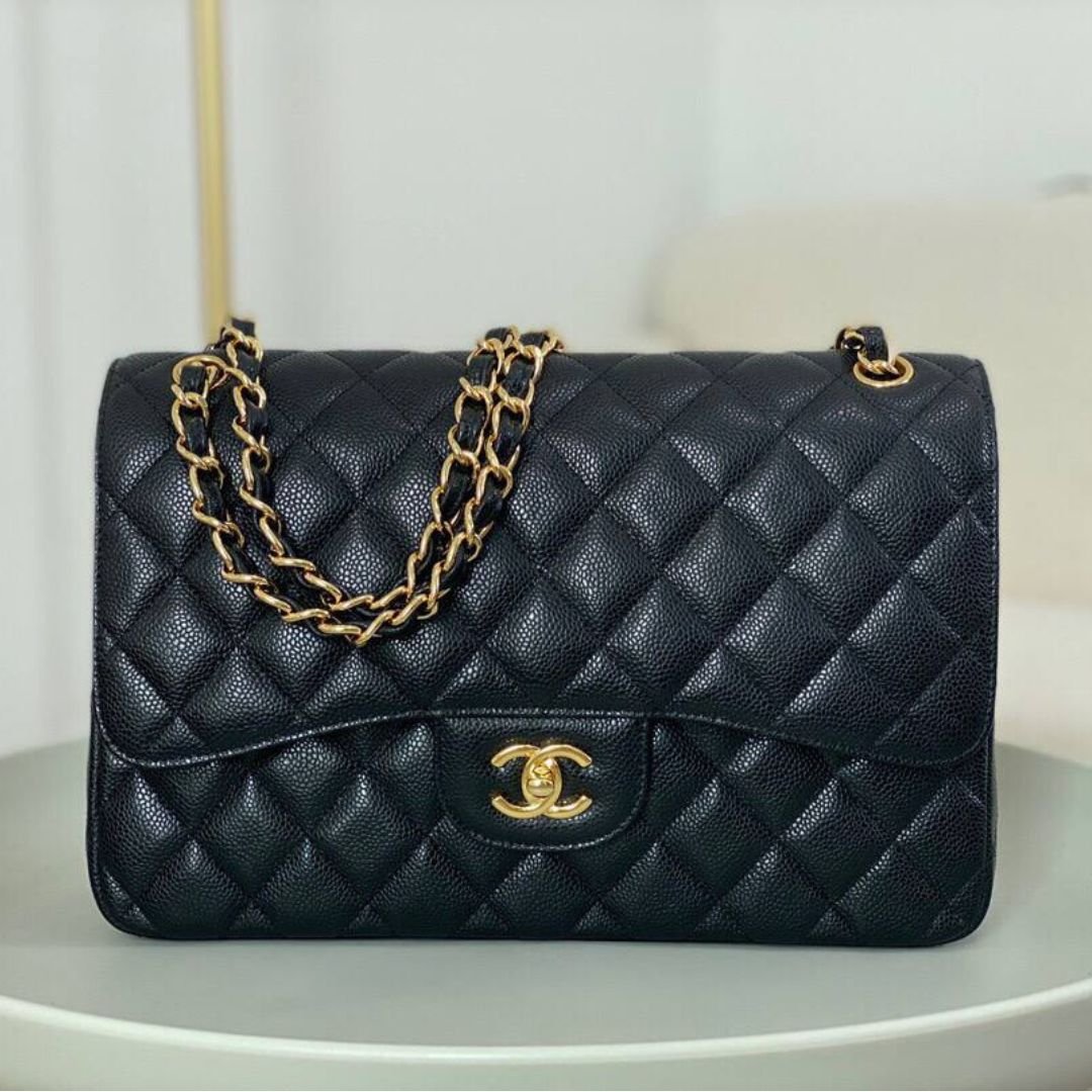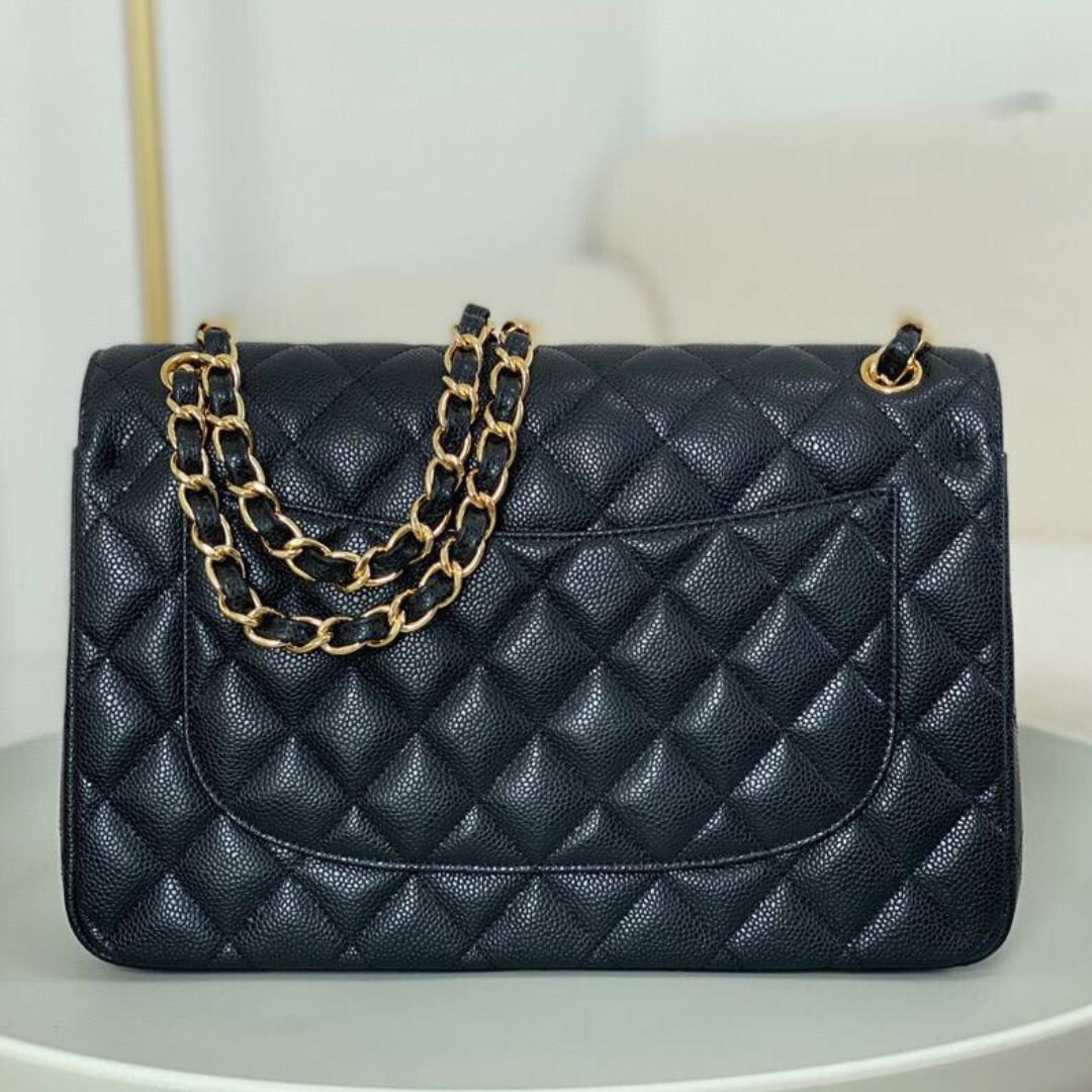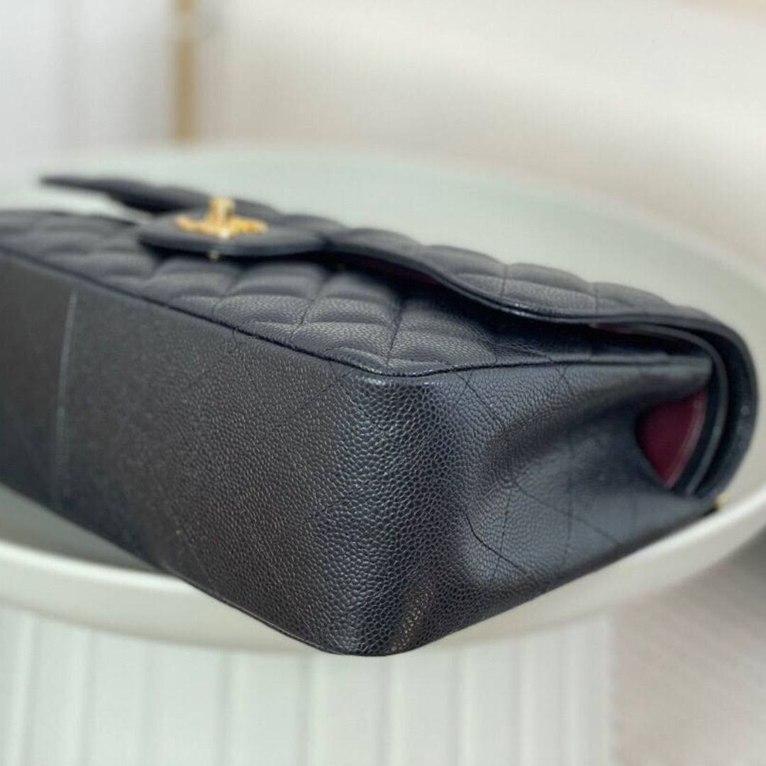 ● Logo: Interlocking double C on front, “Chanel Paris” engraving on inside flap