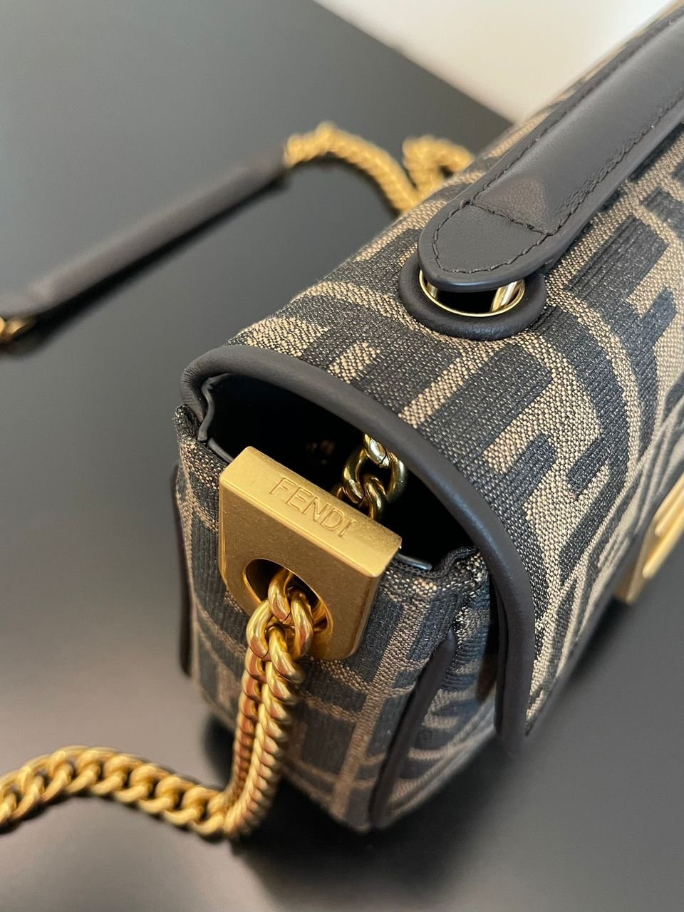 Fendi Baguette Chain Midi Bag in FF Fabric, 24 cm
