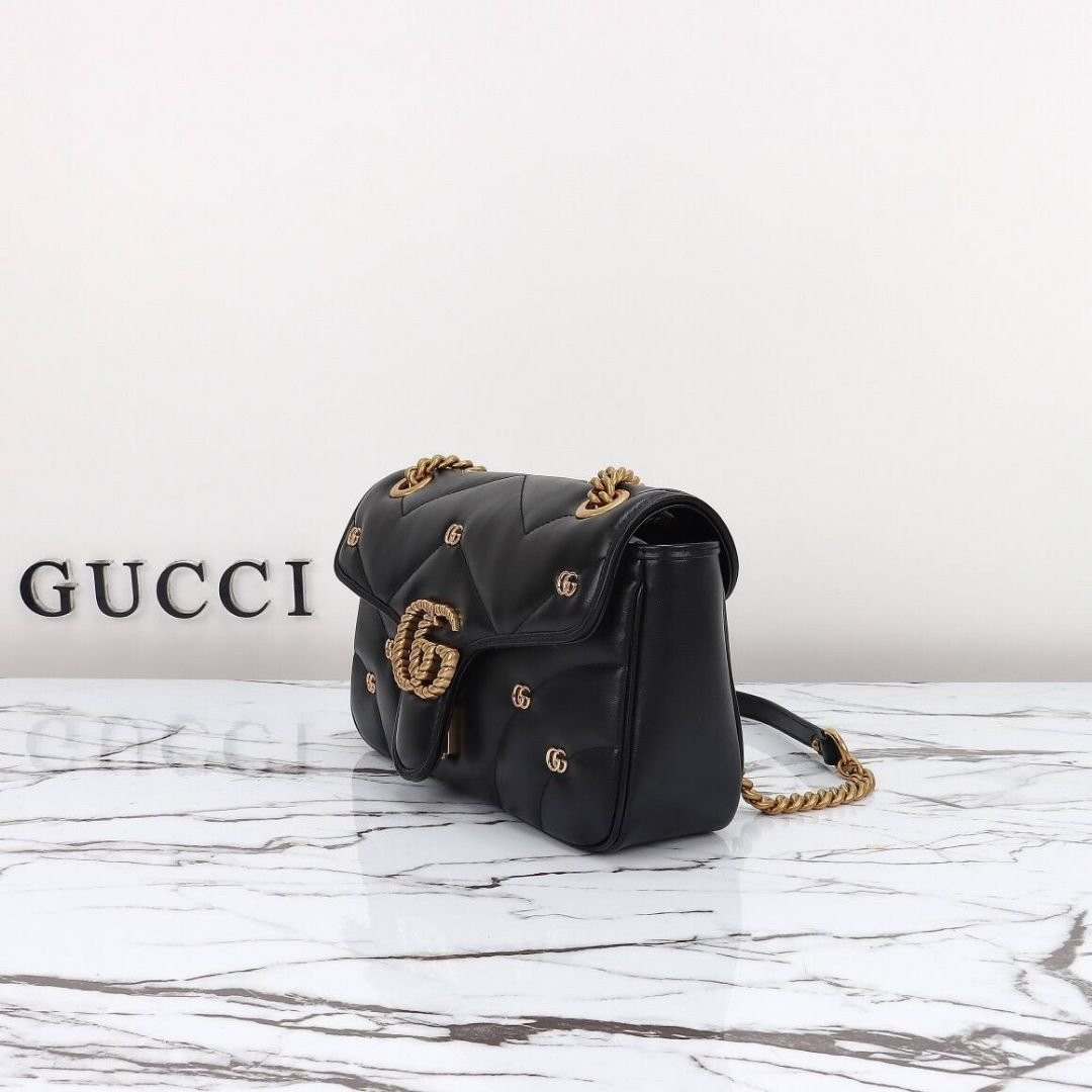 ● Material: Quilted black leather with micro-GG embroidery