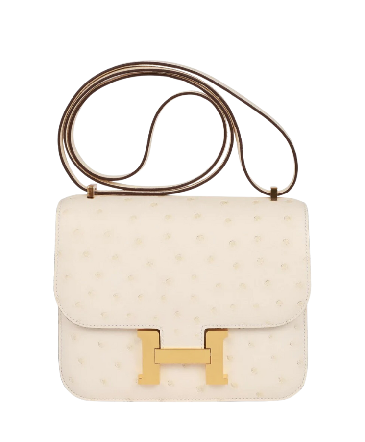 Hermès Constance 19 bag in cream ostrich leather with gold hardware