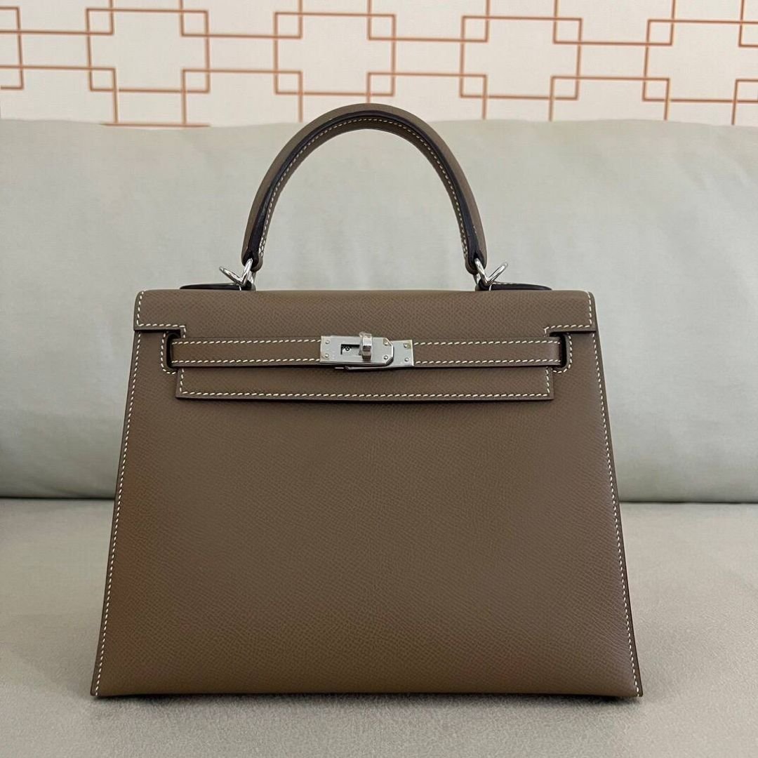 Hermès Kelly Sellier 25 bag in Etoupe Epsom leather with palladium hardware