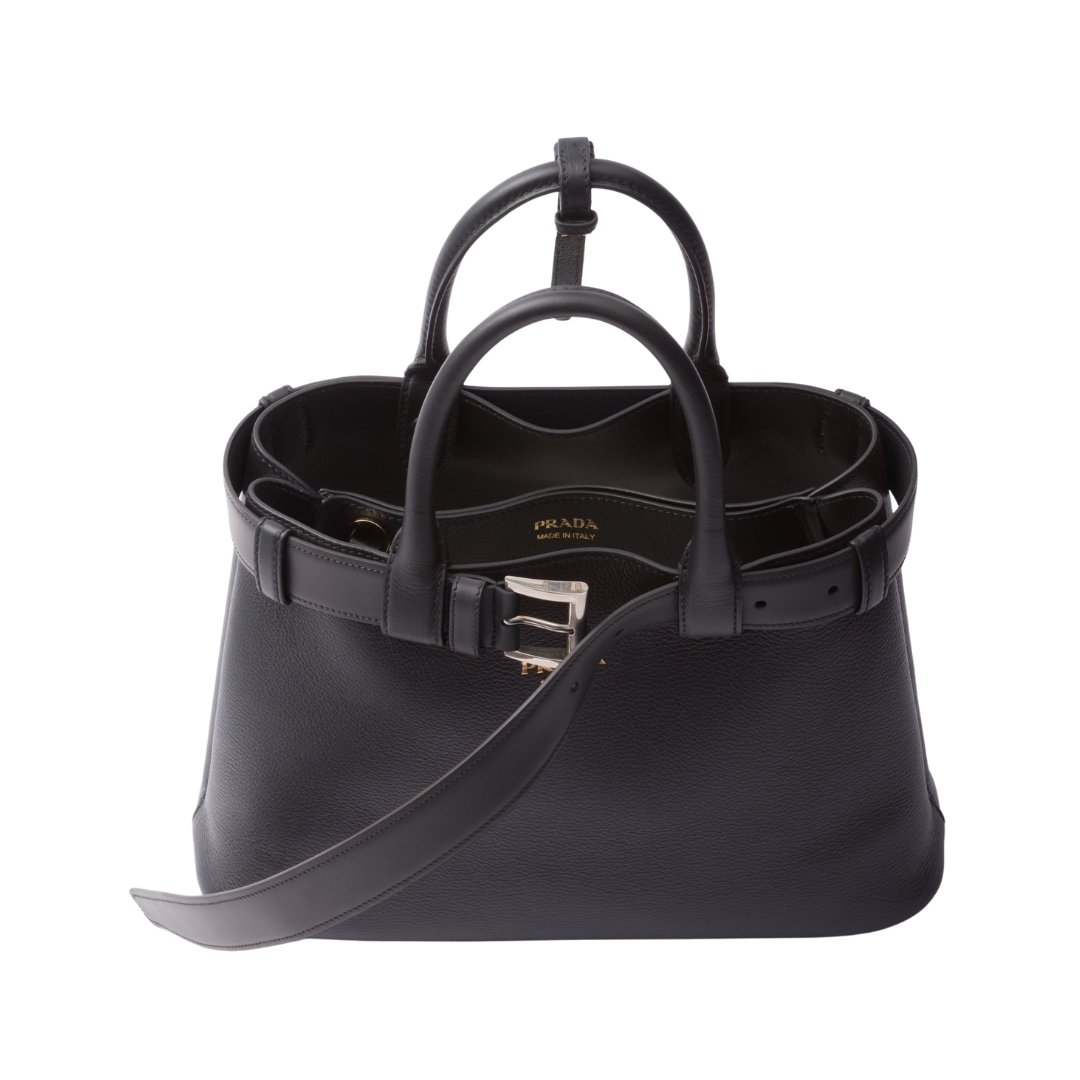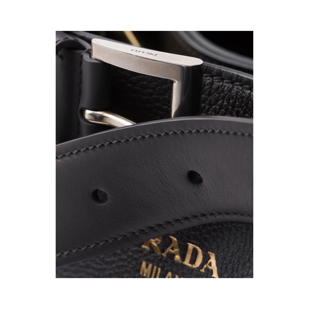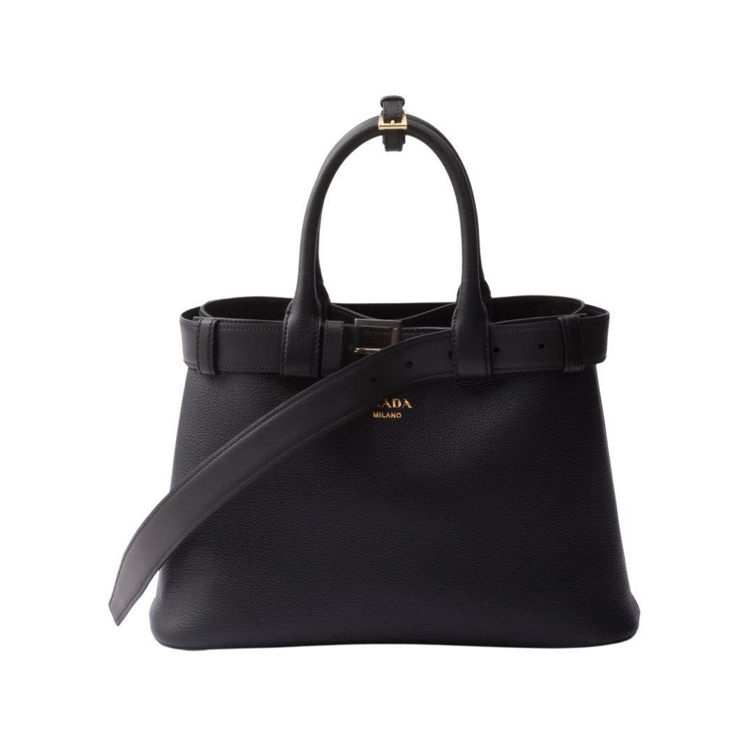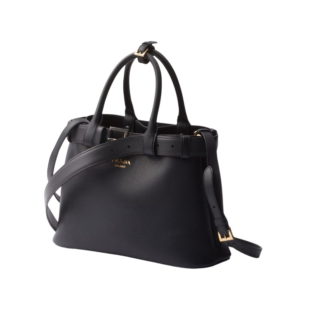 Prada Buckle small black leather bag with belt 23 cm