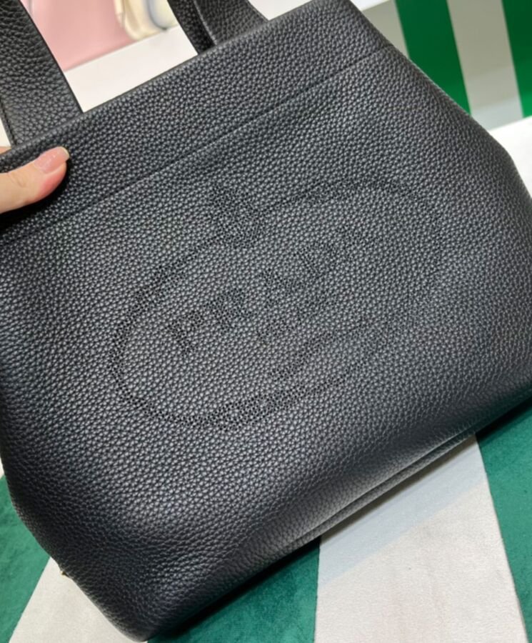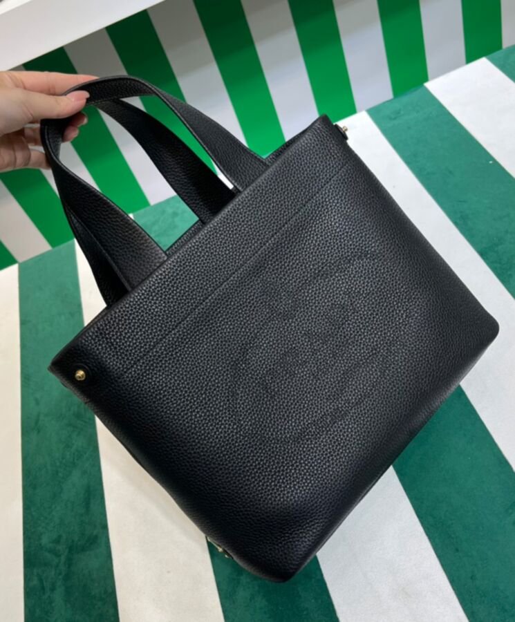 Shoulder strap: Not present, double handles in leather