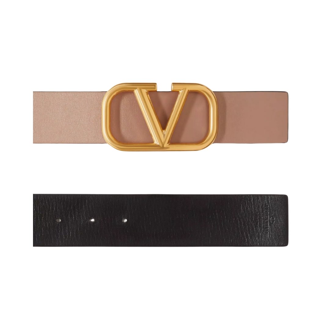 Valentino VLogo Reversible Belt in Sand/Black Leather 4cm