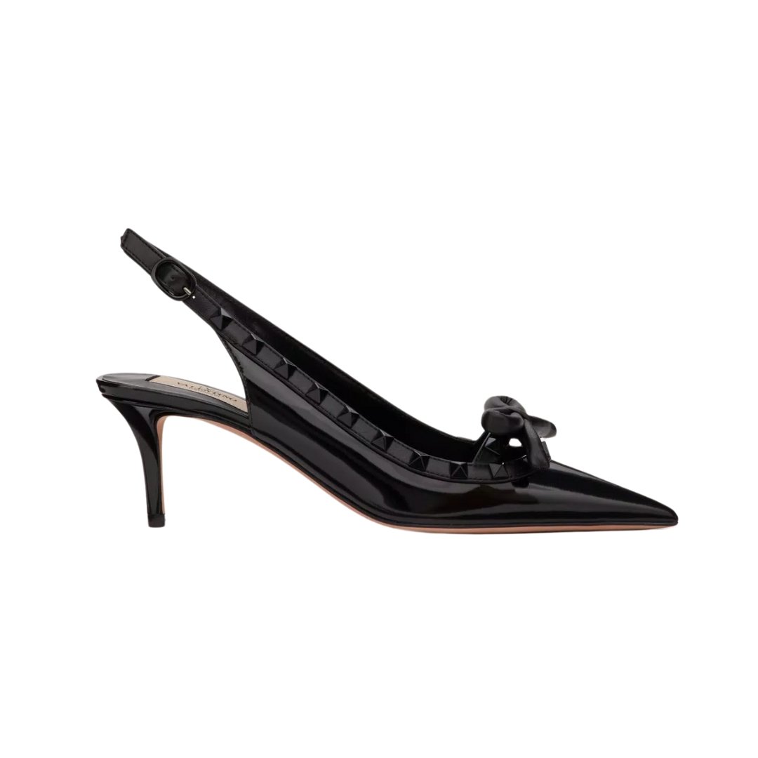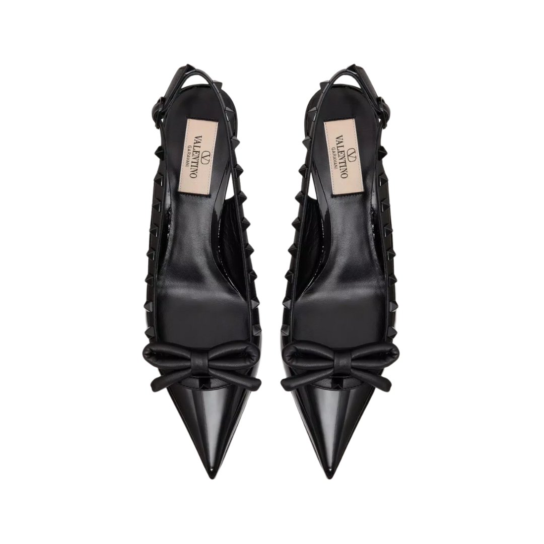 Valentino Rockstud slingback pumps in black leather with bow, 6 cm heel
