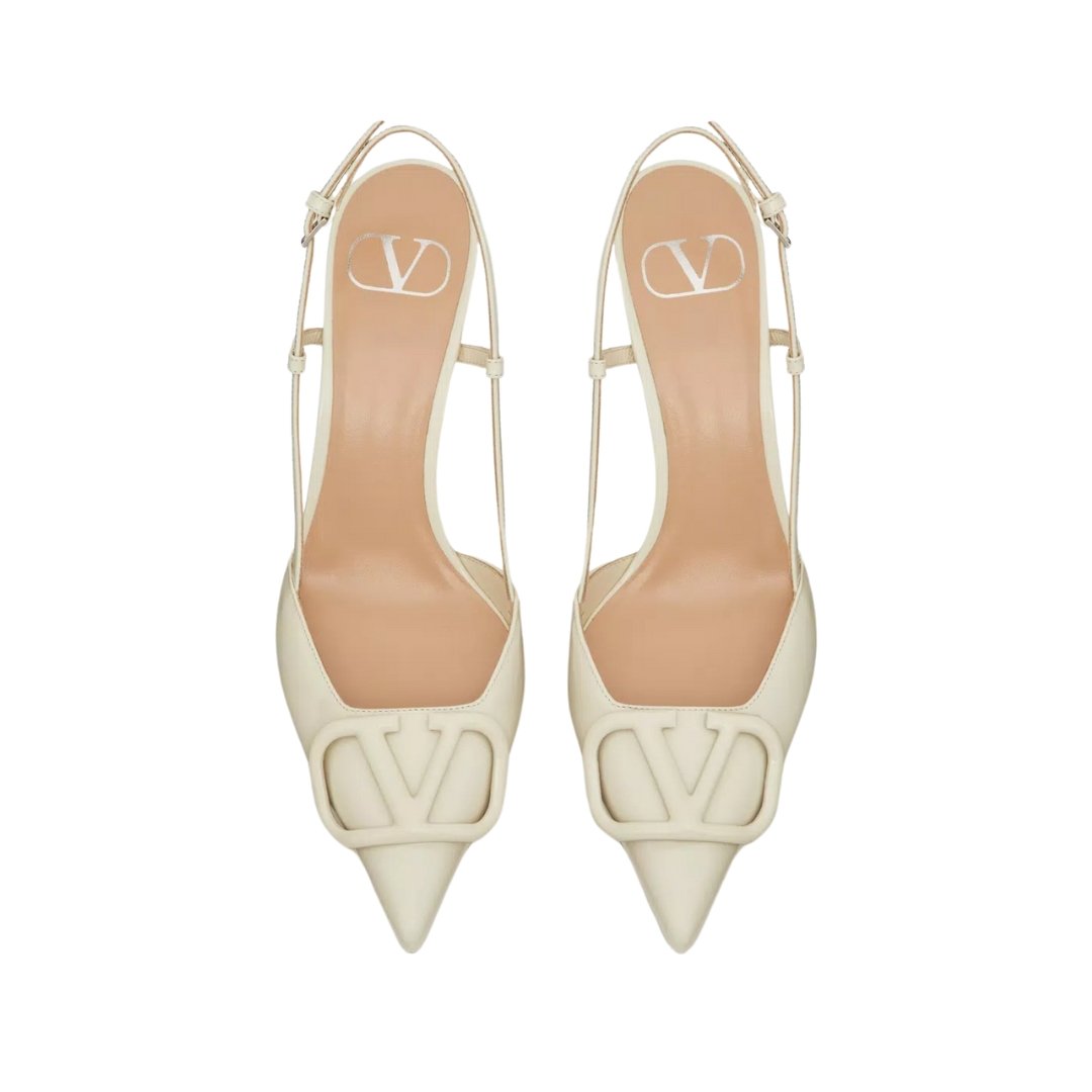 Valentino slingback pumps in ivory leather with VLogo 8 cm