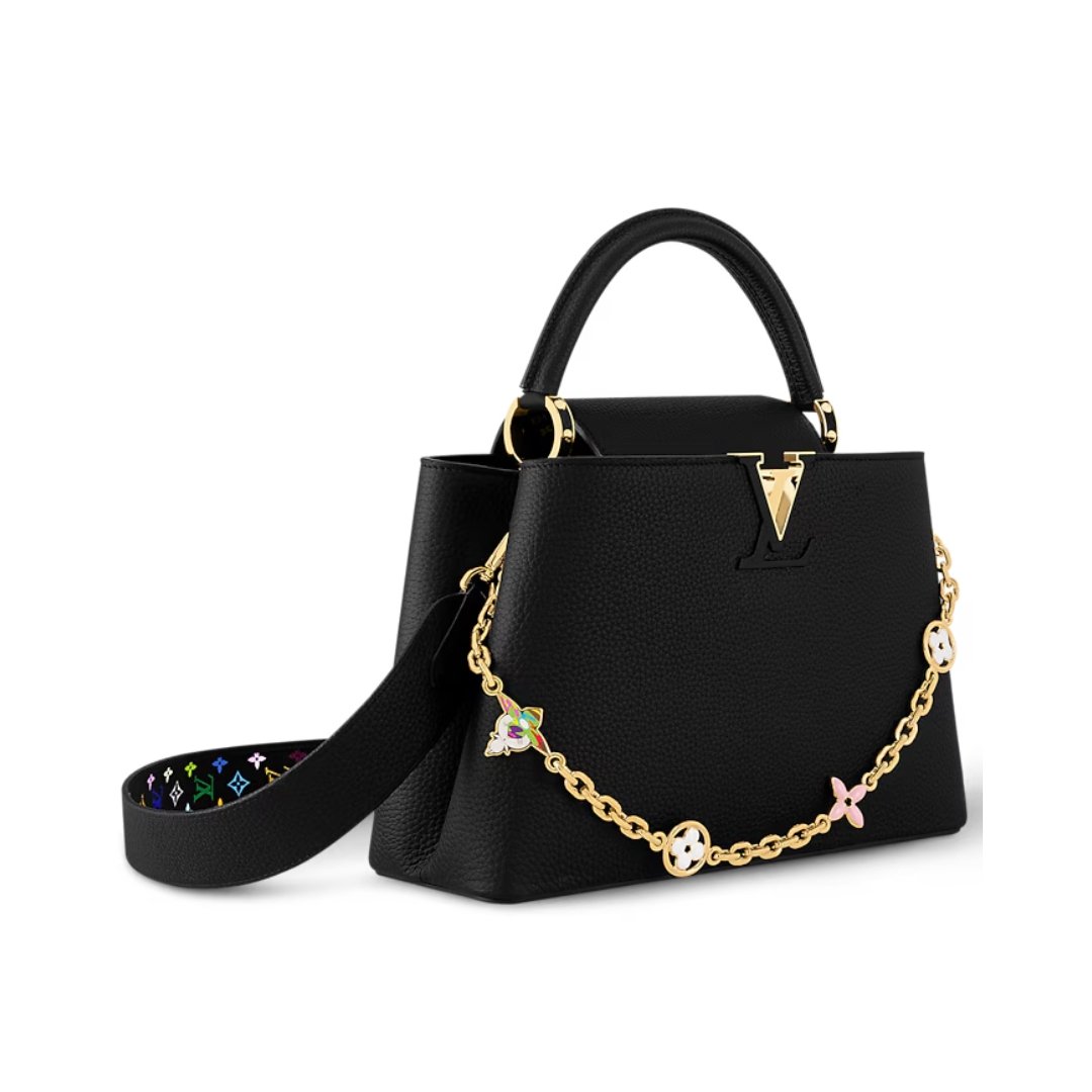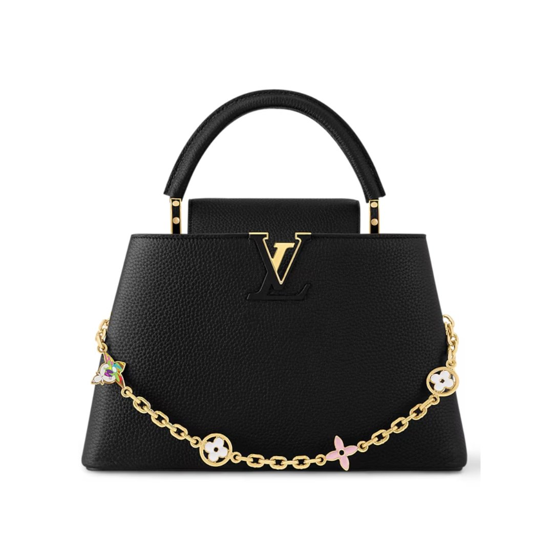● Metallic parts: Gold-plated finishes + chain Monogram charms in multicolored enamel