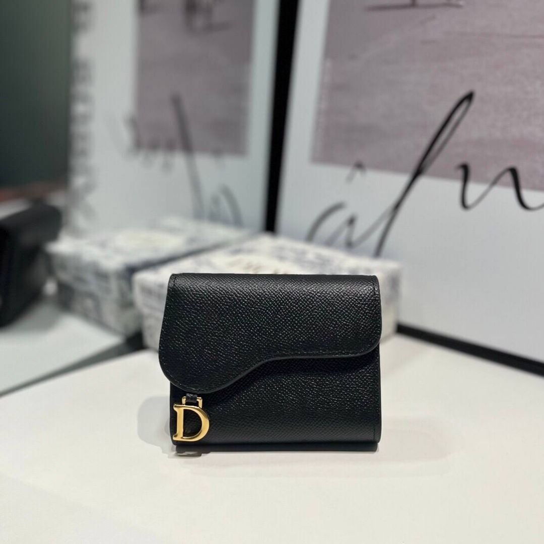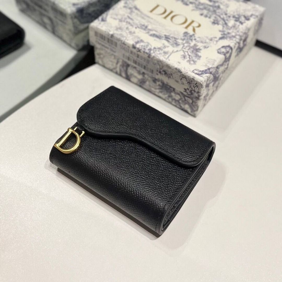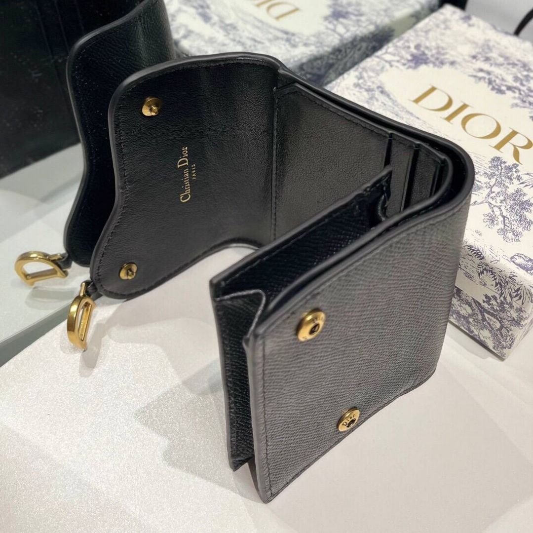 Mini Dior Saddle Wallet in Black Leather 10.5 cmMini Dior Saddle Wallet in Black Leather 10.5 cm