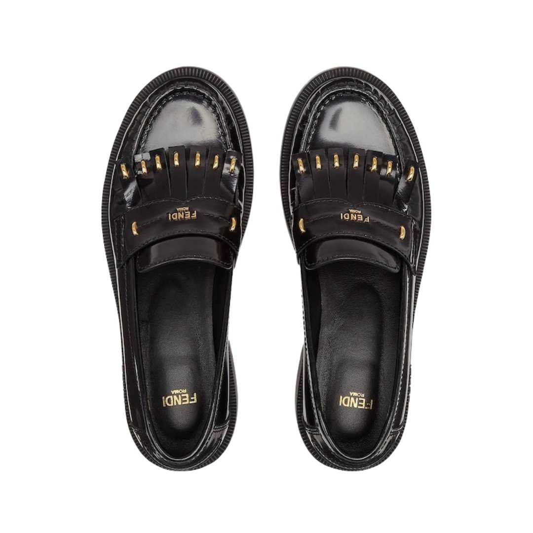 Fendi black leather loafers with FF detail
