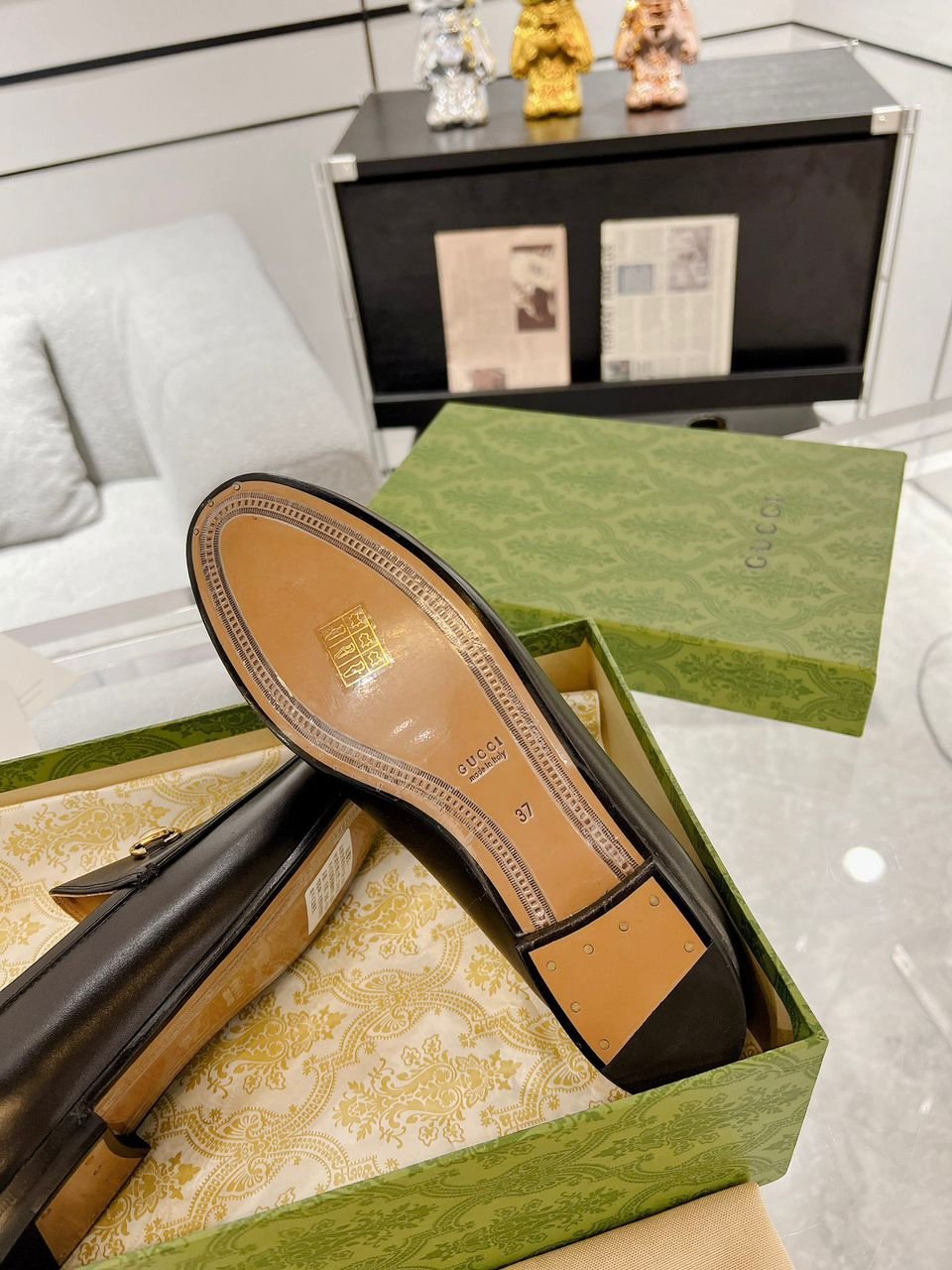 ● Logo: Gold horsebit on the front