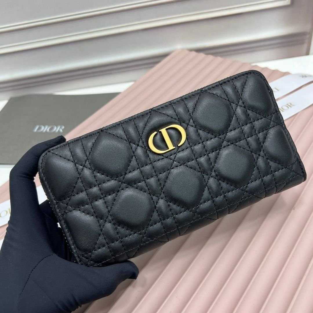 Dior Caro Voyageur Wallet Black 19cm