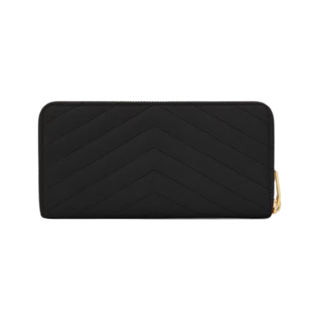 Saint Laurent Cassandre Zip-Around Wallet in Black Leather, 19 cm