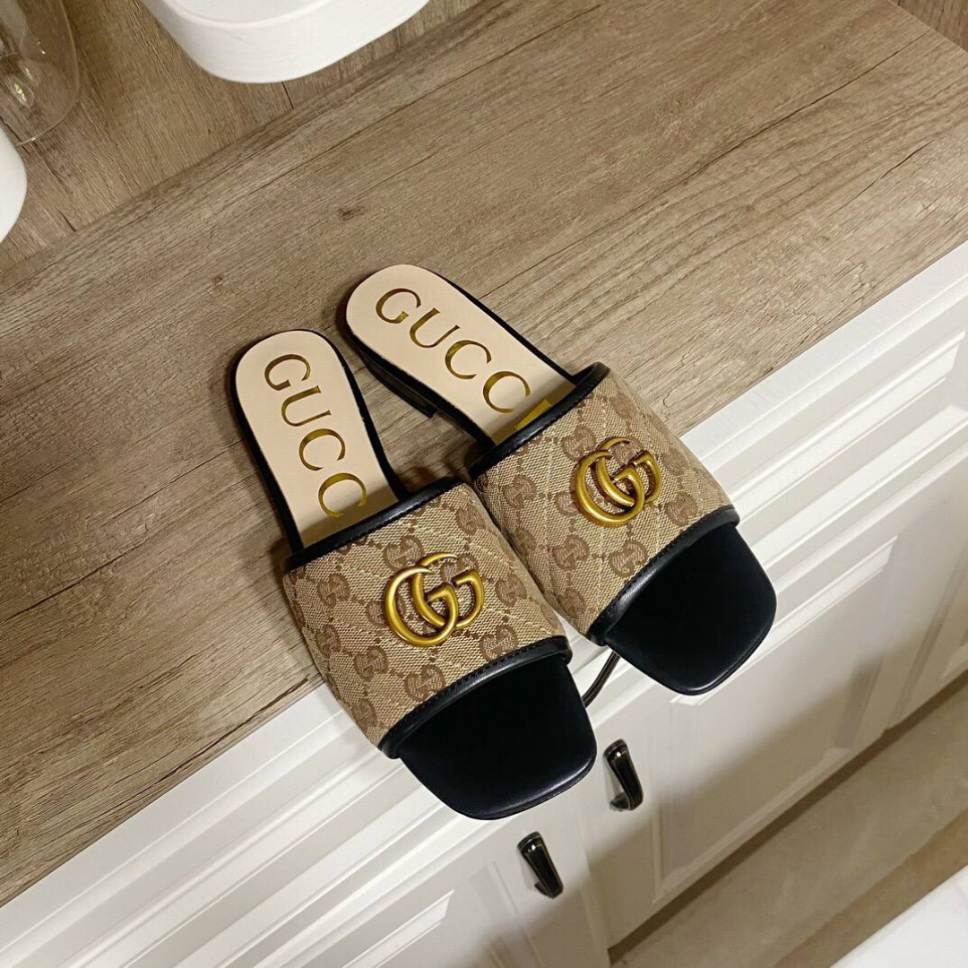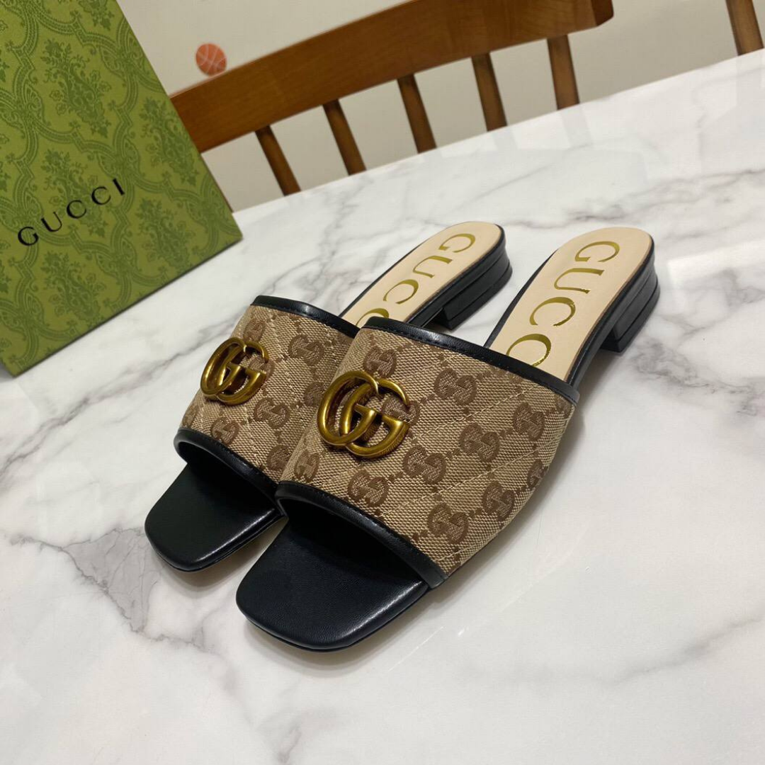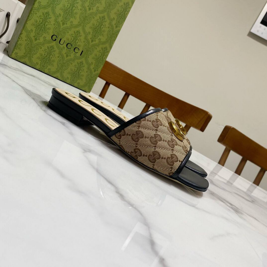 Gucci Jolie sandals in GG Supreme canvas with black leather trim