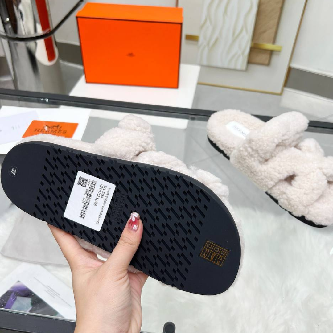 Be the first to review “Hermès Chypre white shearling sandals with adjustable strap”