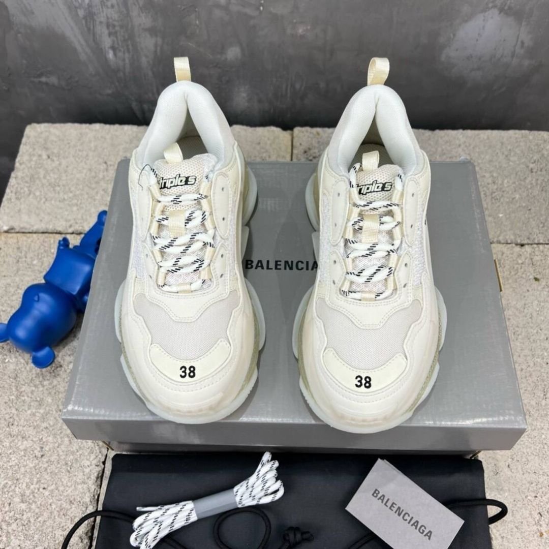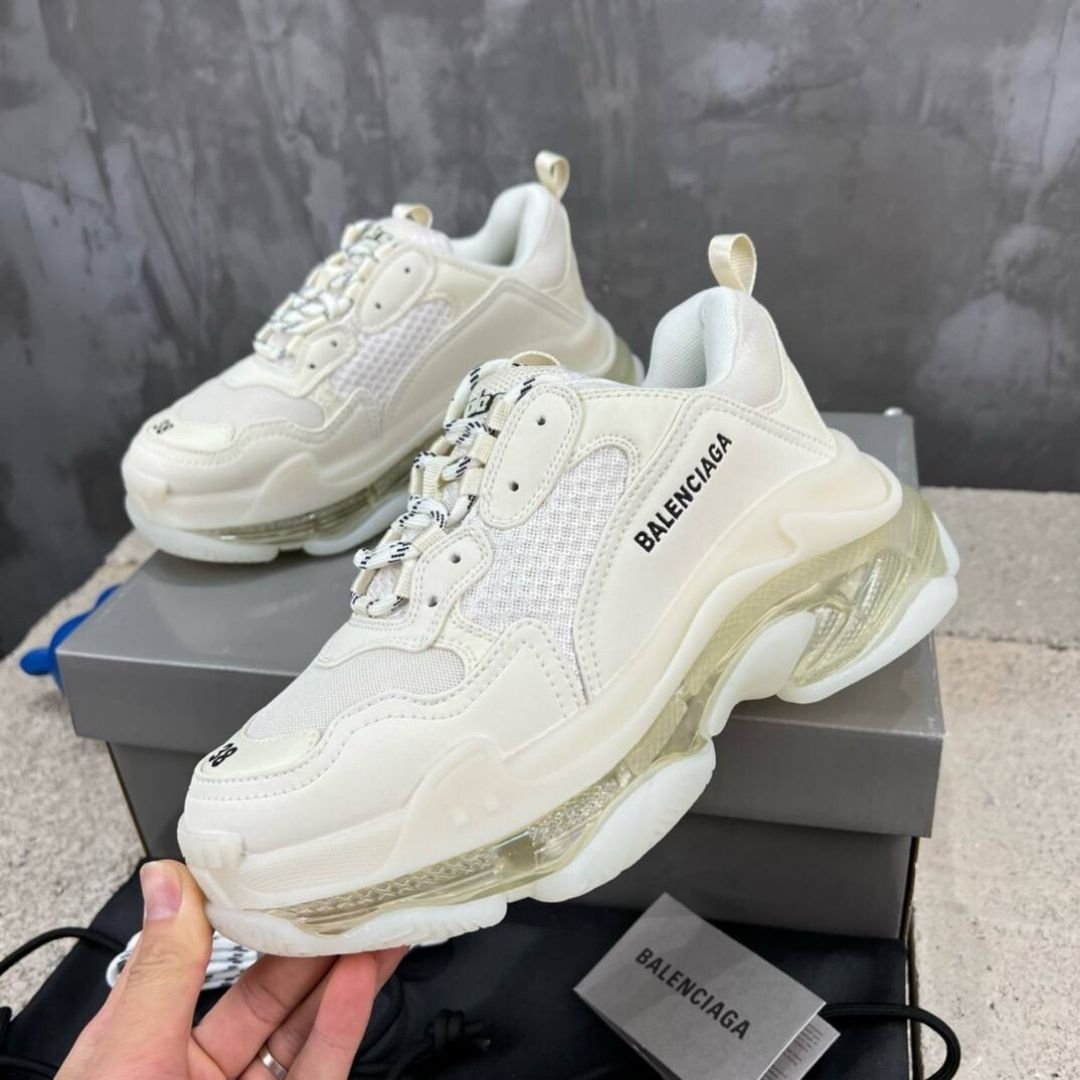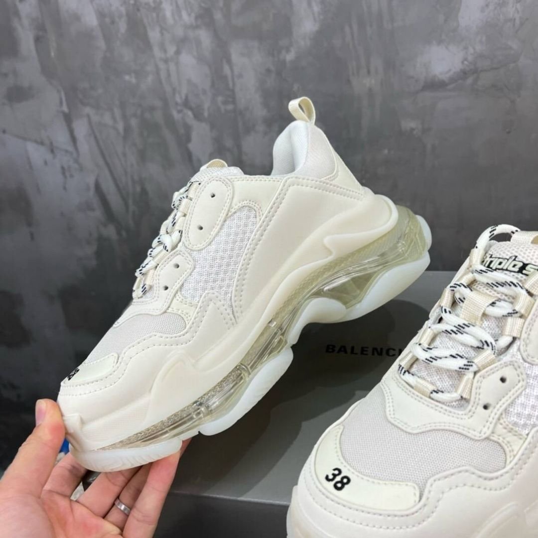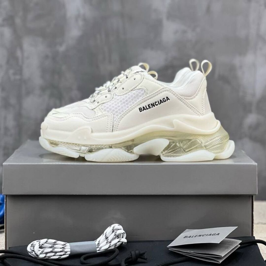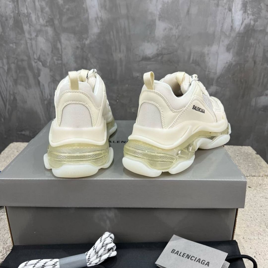 Balenciaga Triple S Clear Sole White Leather and Mesh Shoe